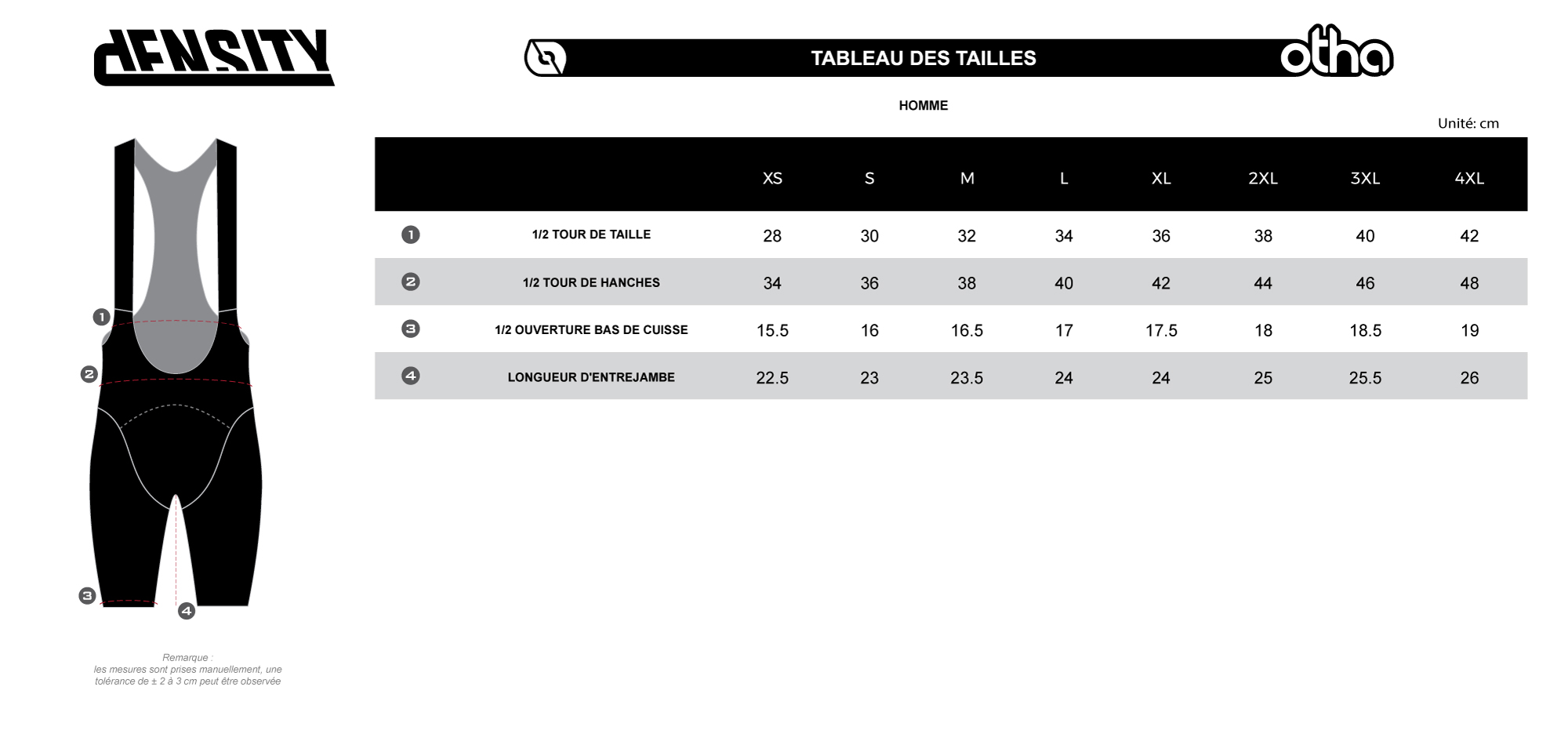 Comparez ces mesures avec un cuissard que vous portez déjà, posé à plat.